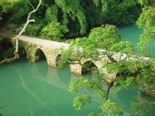 铜鼓桥:该桥位于小七孔景区东大门处,横跨樟江河,始建于1993年,重建于2001年(2001年荔波境内遭遇特大洪水将原铜鼓桥冲毁)。铜鼓桥长126米,净跨60米,宽2.4米,高25米,桥身两端采用瑶山铜鼓造型,故称此桥为"铜鼓桥"。